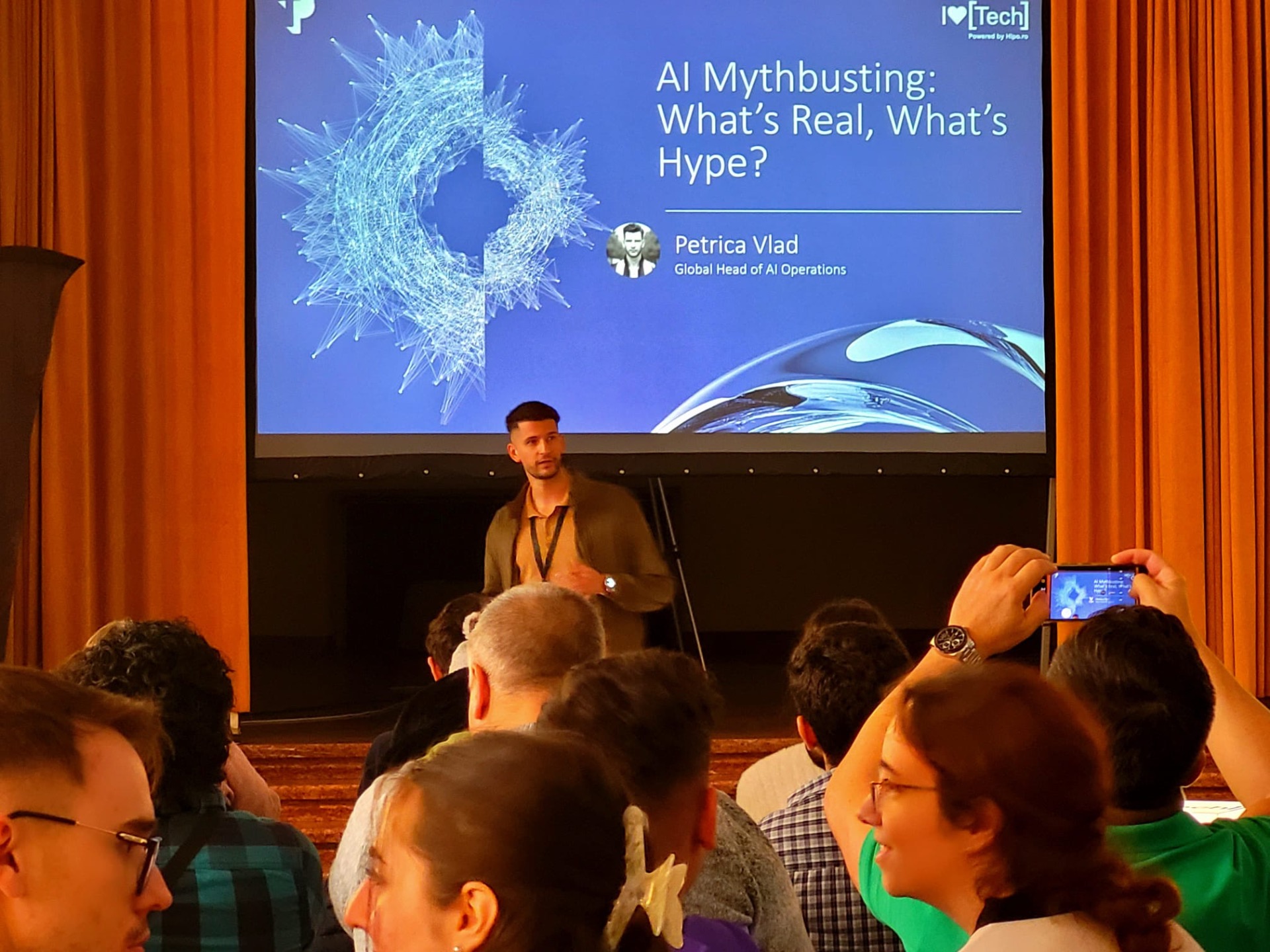 Fiecare prezentare a adus o perspectivă valoroasă, de la realitatea implementării sistemelor AI în organizații, până la provocările legate de responsabilitate, hype și sustenabilitate în zona tehnologică.